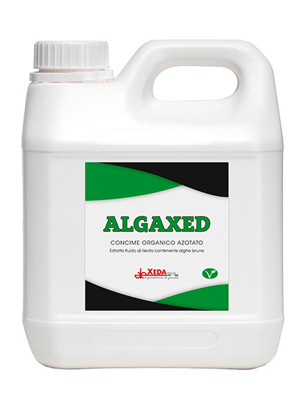 ALGAXED è un fertilizzante liquido totalmente di origine vegetale ottenuto, attraverso un processo di estrazione innovativo, da alghe marine brune (Ascophyllum nodosum). Tale metodo non fa uso di sostanze chimiche estraenti e non utilizza alcun processo ad alta temperatura, bensì una estrazione fisica che non supera mai i 30°C. ALGAXED ha un leggero odore marino ed una composizione ricca di promotori di crescita, nutrienti, minerali, vitamine, carboidrati e amminoacidi, molto vicina a quella dell’alga fresca appena raccolta. ALGAXED è un liquido piuttosto denso, poiché, data la lavorazione a freddo, conserva integro tutto l’alginato dell’alga fresca, di fondamentale importanza in quanto funge da complessante e veicolante per tutti gli altri elementi contenuti o eventualmente abbinati. L’azione di tutti questi componenti naturali, presenti nel formulato in rapporti equilibrati, ha effetto stimolante sul metabolismo della pianta ed una forte azione energetica.