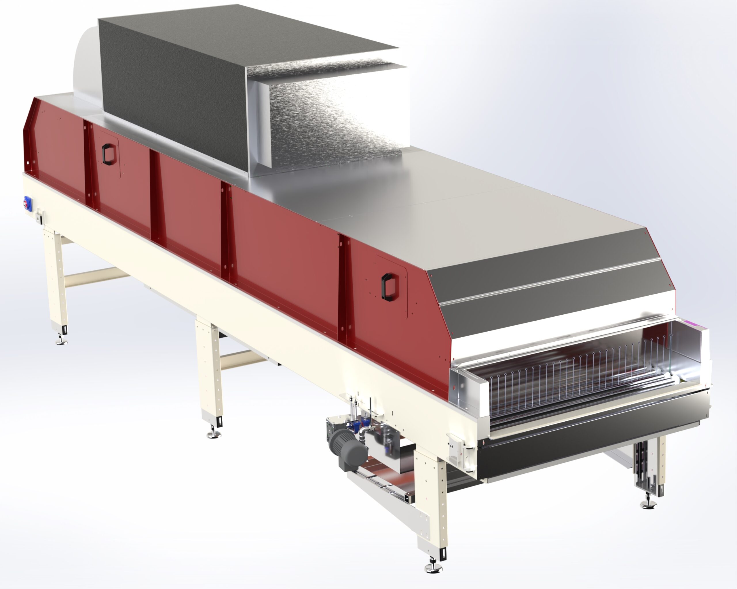 Durante il trascinamento dei frutti sul nastro trasportatore a rulli, avviene l’aspersione di una forte corrente d’aria calda proveniente da un generatore alimentato da un bruciatore. L’aria calda genera sulla buccia un film protettivo “sigillando” il frutto. Un termostato provvede all’avvio ed all’arresto del bruciatore in maniera da mantenere la temperatura dell’aria calda costantemente al valore desiderato. Agitatori posti all’interno della camera, aumentano il potere di evaporazione della macchina per un’asciugatura completa.